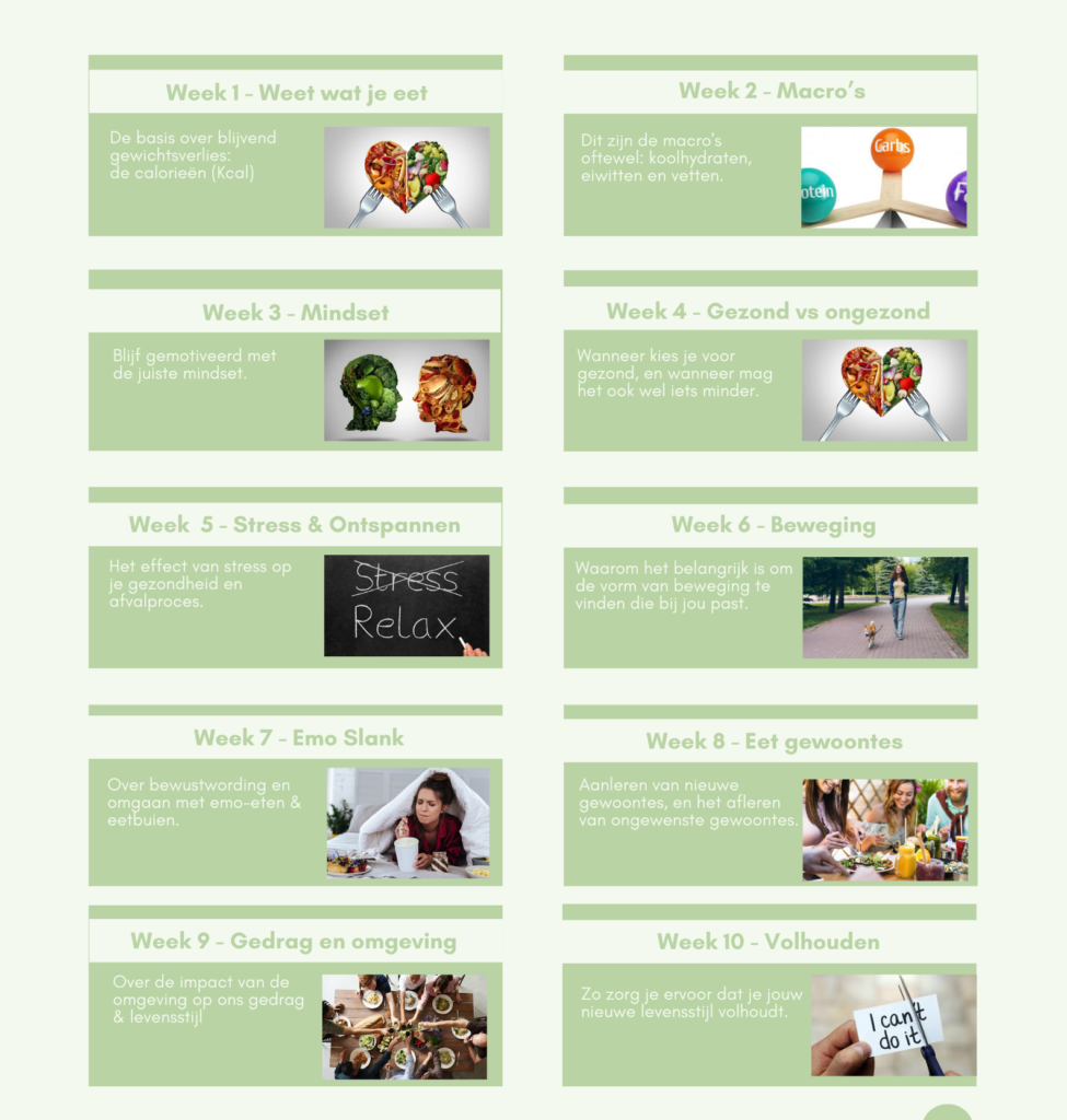 Met de 10-weekse online cursus ENERGIEK GEZOND & SLANK, krijg je alle kennis die je nodig hebt om je gewicht én je gezondheid een upgrade te geven.